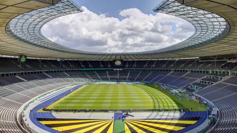 А вот и самый вместительный стадион будущего Евро-2024, который, что логично, находится в столице Германии – Берлине. Арена, позволяющая посмотреть футбольный матч сразу 74 475 болельщикам, была построена очень давно – в 1936-м году, но после нескольких реконструкций о старине здесь не осталось и следа, разве что памятные скульптуры у входа.
